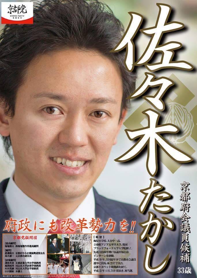 院を経て帰国。帰国後は政治家の秘書を経て、25歳で京都市会議員選挙に初挑戦も66票差で惜敗。