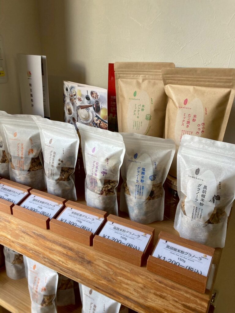 そして吉田さんの代で明確に始まった挑戦が、BtoC(一般消費者向け)の商品展開です。もともと朝日製粉所は業者向け卸(BtoB)が中心でしたが、「もっと手に取りやすい形で届けられないか」と考え、米粉のパンケーキミックスからスタートしました。