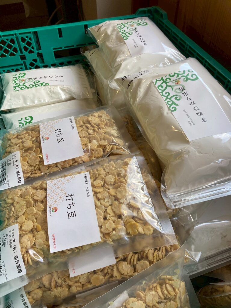 朝日製粉所の主軸は、米粉・もち粉の製造販売です。地元のお米を中心に仕入れ、用途に合わせた粉へ仕上げていく。言葉にするとシンプルですが、吉田さんの話を聞くほどに、粉づくりが“繊細な技術と経験の積み重ね”で成り立っていることがよく分かりました。