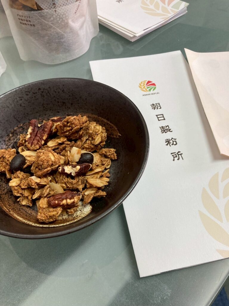 そうした環境の中で、朝日製粉所は“粉としての品質”だけでなく、“商品としての伝え方”にも挑戦しています。”グラノーラ”では、ご縁から京都のホテル関係者につながり、「これ、すごく美味しい。どこの?」と紹介が広がったエピソードもありました。お子さまの学校での出会いから縁がつながったという話は、まさに吉田さんの事業が「品質 と ご縁」で伸びていくことを象徴していると感じました。