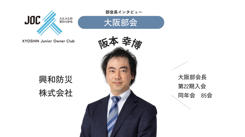 Section部会 京信JOC第24期 > 部会 > 大阪部会 大阪部会一覧 大阪部会 部会長インタビュー 大阪部会 興和防災株式会社 阪本 幸博さん ー見えない安心”を守る誇り、そして大阪部会をつなぐ横の力へー プロフィール 興和防