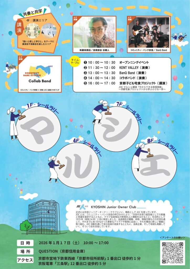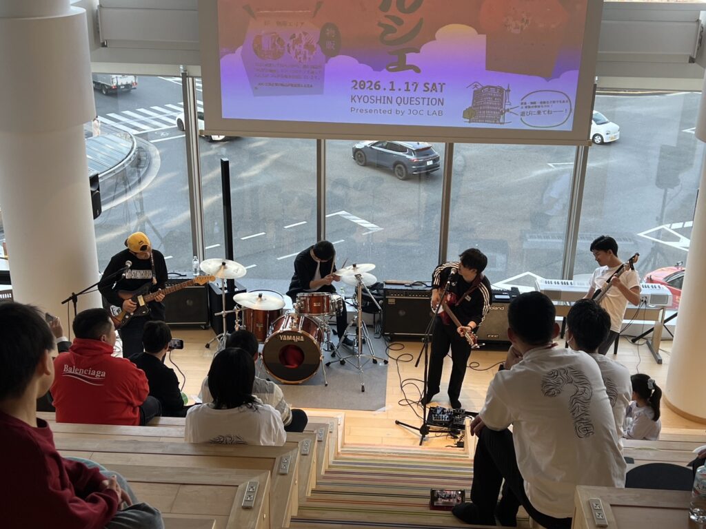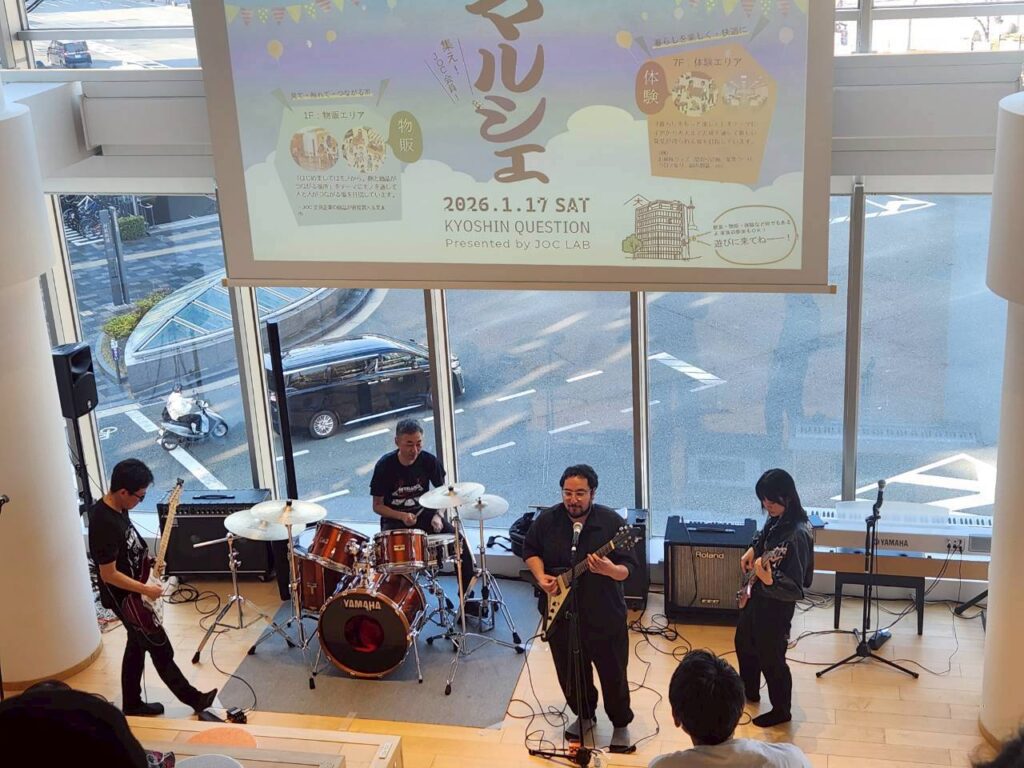 JOC会員とコミュニティ・バンク京信によるバンド演奏は、自由に出入り可能な形式で行われ、来場者の待ち時間や休憩の場として、多くの方に気軽に立ち寄っていただきました。