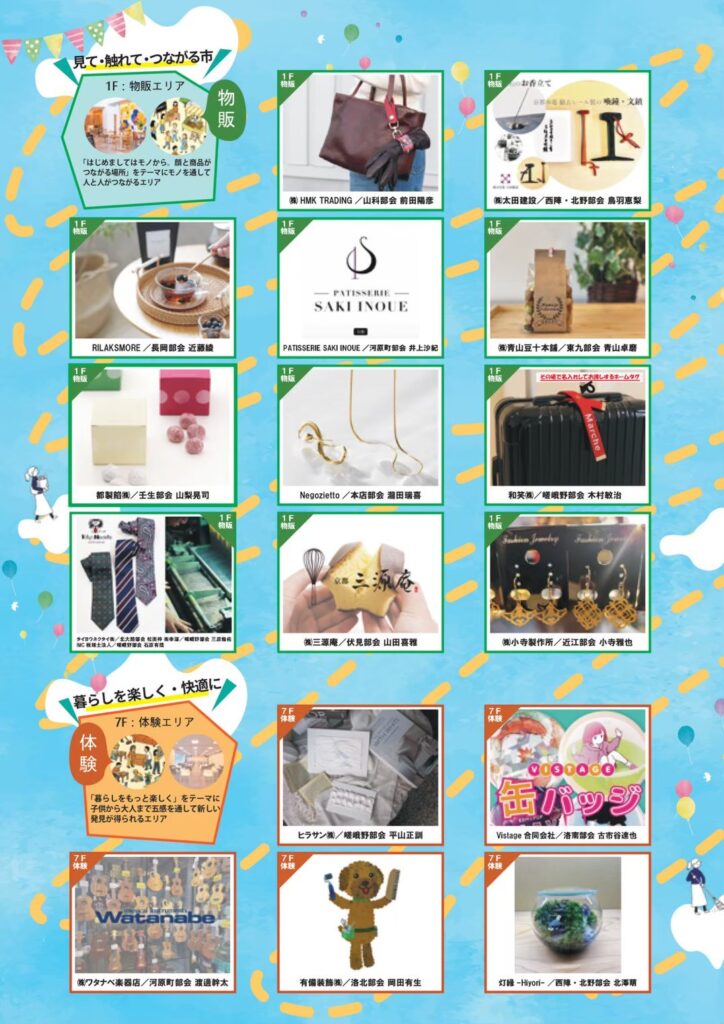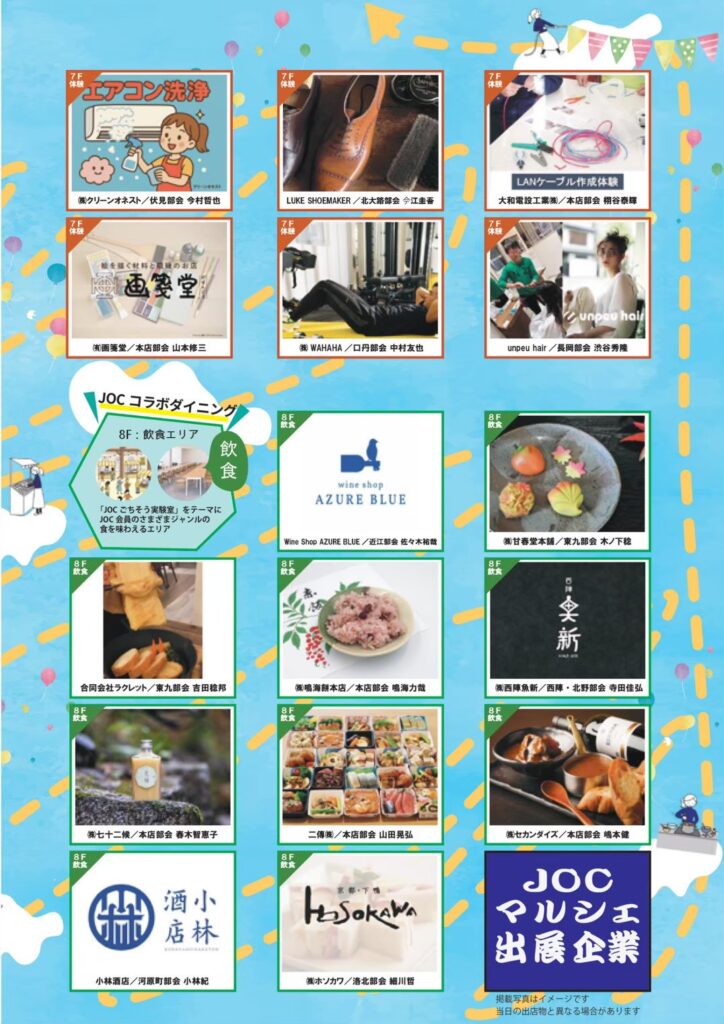 本事業は、京信ジュニア・オーナー・クラブ(以下、JOC)内の様々な企業が一堂に会し、「物販」「講演」「体験」「飲食」の4つのエリアに分かれて出店する『マルシェ』として企画されました。
